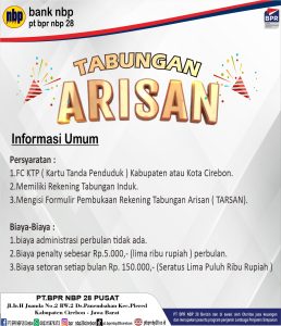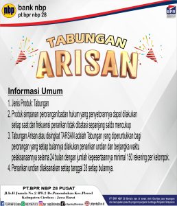 • Tabungan Arisan atau disingkat TARSAN adalah Tabungan yang diperuntukkan bagi perorangan yang setiap bulannya dilakukan penarikan undian dan berjangka waktu pelaksanaannya selama 24 bulan dengan jumlah kepesertaannya minimal 150 rekening per kelompok.