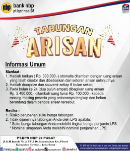 • Hadiah tarikan ( Rp. 300.000,-) otomatis ditambah dengan uang arisan yang telah disetor dan dibebaskan dari setoran arisan selanjutnya ;